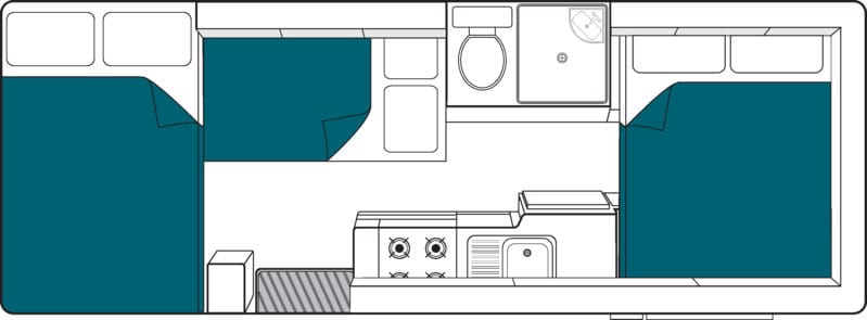 - Double (front dinette) 1.84m x 1.15m